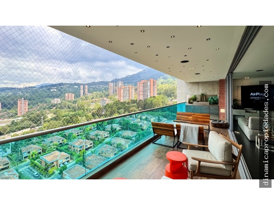 Hermoso apartamento en piso alto con una fantástica vista de Medellín. Encontrarás en él una amplia zona social con un generoso balcón con zona de BBQ para pasar agradables momentos con familia y amigos. La cocina moderna con acabados premium y un gran espacio, con barra americana y zona para un comedor auxiliar. Habitación principal con walk-in closet, baño con jacuzzi. Habitación auxiliar con vestier y baño propio. Estudio que puede hacer las veces de tercera habitación. Zona de lavandería, cuarto de servicio, baño de servicio. Baño social.